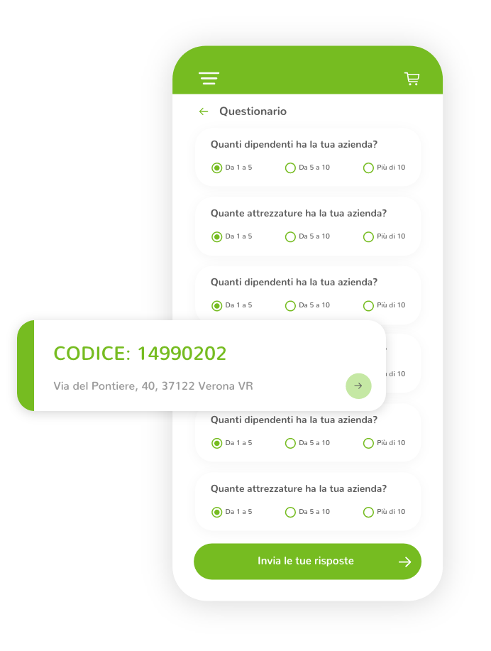 Collegata alle anagrafiche, è prevista una sezione dedicata alla profilazione del cliente dove è possibile configurare tramite backend la tipologia e la quantità di domande da sottoporre al cliente durante la visita. Le tipologie di domande che possono essere configurate sono: a scelta singola, multipla e a risposta aperta.