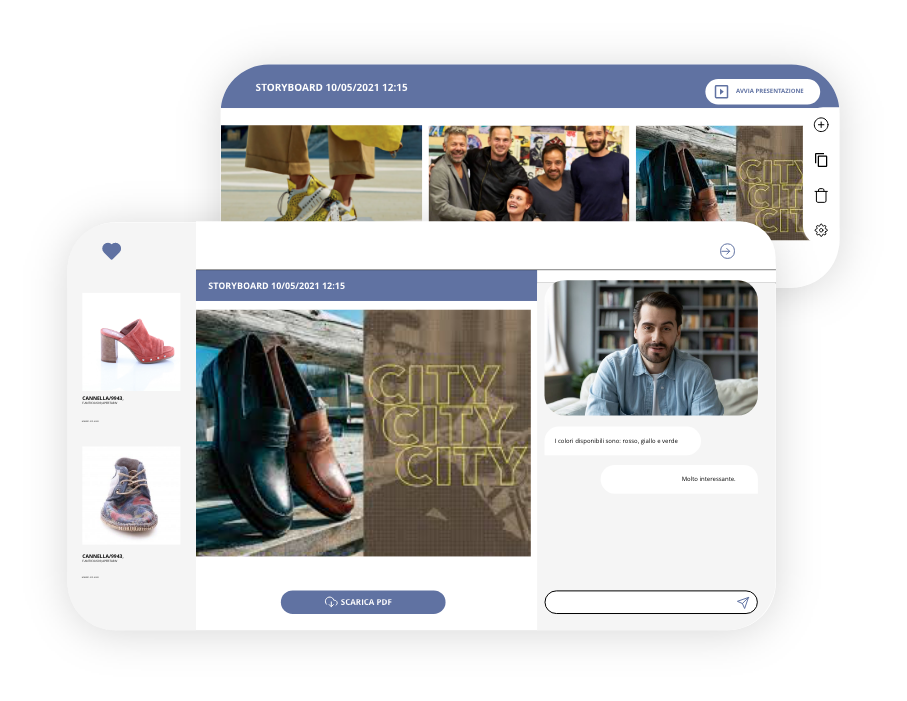 L’empatia di una comunicazione efficace nasce dal contatto umano ed è facile che si perda attraverso uno strumento Web tradizionale. In una situazione di mercato in cui i contatti interpersonali sono limitati o mantenuti a distanza, abbiamo progettato questi due moduli permettono di supportare l’attività di vendita a distanza mediante l’uso di conference call, chat e condivisione di contenuti in alta qualità con l’obiettivo di ricreare l’esperienza di vendita attraverso strumenti digitali.