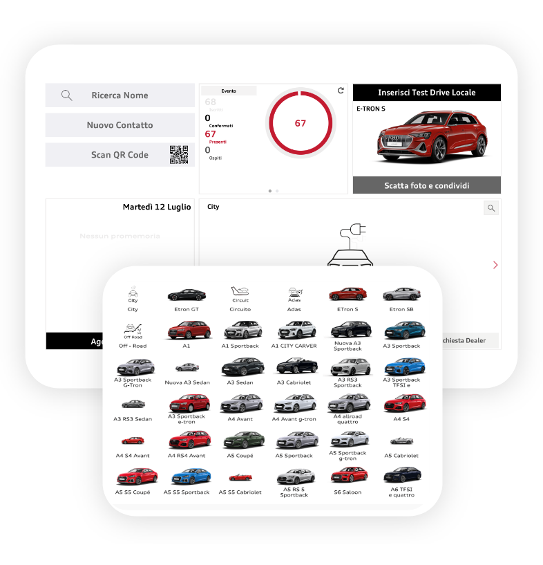 La nostra app ha risposto pienamente a questa esigenza, permettendo l’attività di raccolta di nuovi leads, registrare la presenza ad un evento e prenotare e gestire i test-drive delle vetture. Inoltre, direttamente dall’app è possibile apporre la firma grafometrica sui documenti che vengono sottoposti ai propri clienti durante gli eventi. Abbiamo dedicato particolare cura nella realizzazione dell’interfaccia grafica, il nostro obbiettivo è stato quello di fornire la migliore esperienza d’utilizzo e performance unita al rispetto del corporate design del cliente. La piattaforma comprende l’applicazione per tablet e il backend da cui è possibile gestire tutte le informazioni raccolte dai dispositivi.